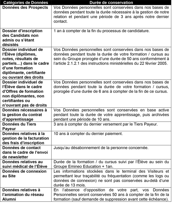 Des espaces interactifs (possibilité de poser des questions dans l’espace contact) sont à la disposition des utilisateurs. Emineo Management se réserve le droit de supprimer, sans mise en demeure préalable, tout contenu déposé dans cet espace qui contreviendrait à la législation applicable en France, en particulier aux dispositions relatives à la protection des données. Le cas échéant, Emineo Management se réserve également la possibilité de mettre en cause la responsabilité civile et/ou pénale de l’utilisateur, notamment en cas de message à caractère raciste, injurieux, diffamant, ou pornographique, quel que soit le support utilisé (texte, photographie…).